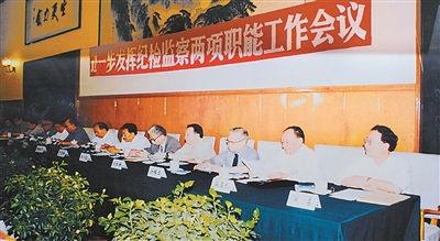 1993年,我们党首次提出,反腐败斗争形势是严峻的,要坚决制止腐败现象蔓延的势头。基于这一判断,党中央决定中央纪委和监察部合署办公。图为1994年8月,中央纪委、监察部召开进一步发挥纪检监察两项职能工作会议。