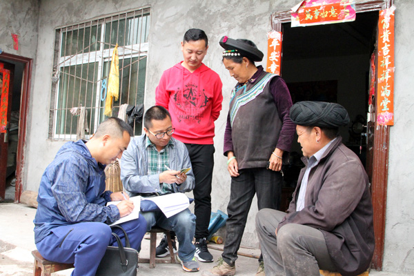 图为四川省甘洛县纪检监察干部在团结乡中波洛村逐一核对“一卡通”办卡情况。(吉乃衣布子 摄)