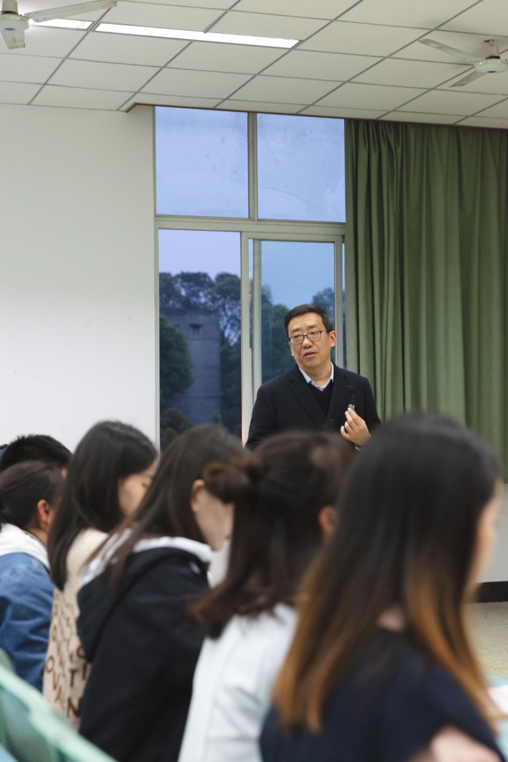 本网讯(文/高梦娜 刘晓娟、图/李边豪)3月26日晚上6:45,行知楼301教室政法学院16级“形势与政策”课堂走进一位既熟悉又陌生的老师——学校党委书记胡丹教授。经任课教师介绍,胡书记是专门来为同学们上课、宣讲全国“两会”精神的。“为同学们上思政课,我有点小激动。”在一阵热烈的掌声中胡书记开启了授课。