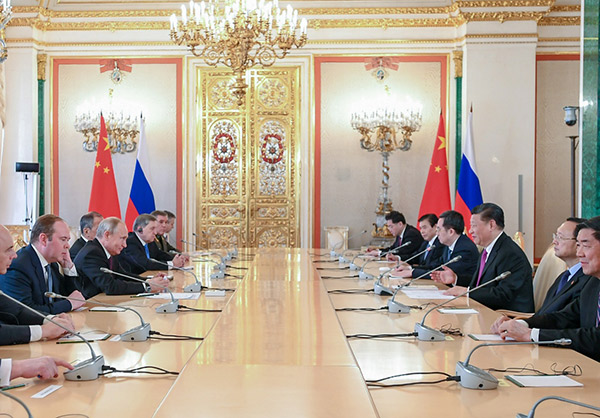 习近平指出,这是我连任国家主席后,首次对俄罗斯进行国事访问,也是2013年以来第八次到访俄罗斯。当前,中俄关系在高水平上持续、稳定、健康发展,处于历史最好时期。双方坚定支持对方维护本国核心利益,政治和战略互信坚实牢固;积极推进各领域合作,两国关系内生动力不断显现,利益交融日益深化;积极参与国际事务和全球治理,为维护世界和平稳定和国际公平正义发挥了重要建设性作用。