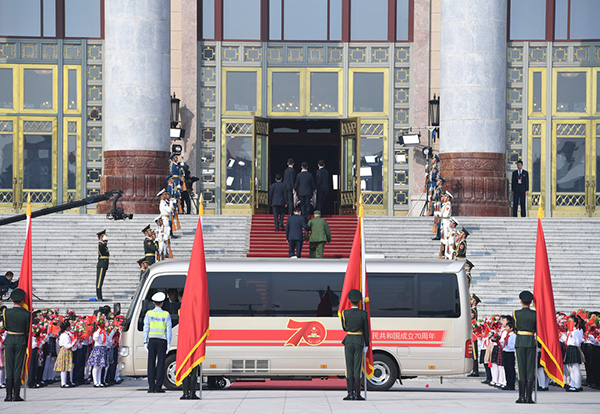 9月29日上午,国家勋章和国家荣誉称号获得者抵达人民大会堂。