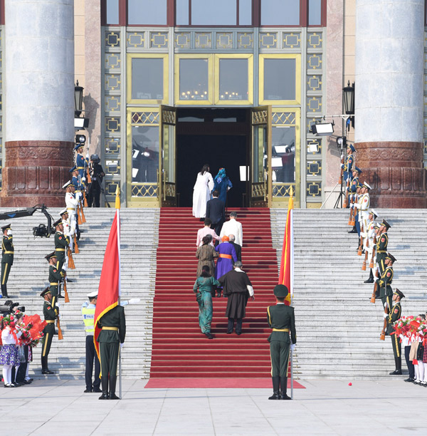 经中共中央批准,中华人民共和国国家勋章和国家荣誉称号颁授仪式于9月29日上午10时在北京人民大会堂隆重举行。 新华社记者 申宏 摄